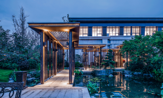 取《蘭亭集序》園林意境,完美融合東方美學(xué)和現(xiàn)代建筑手法,賦予項(xiàng)目深厚的文化氣質(zhì)。